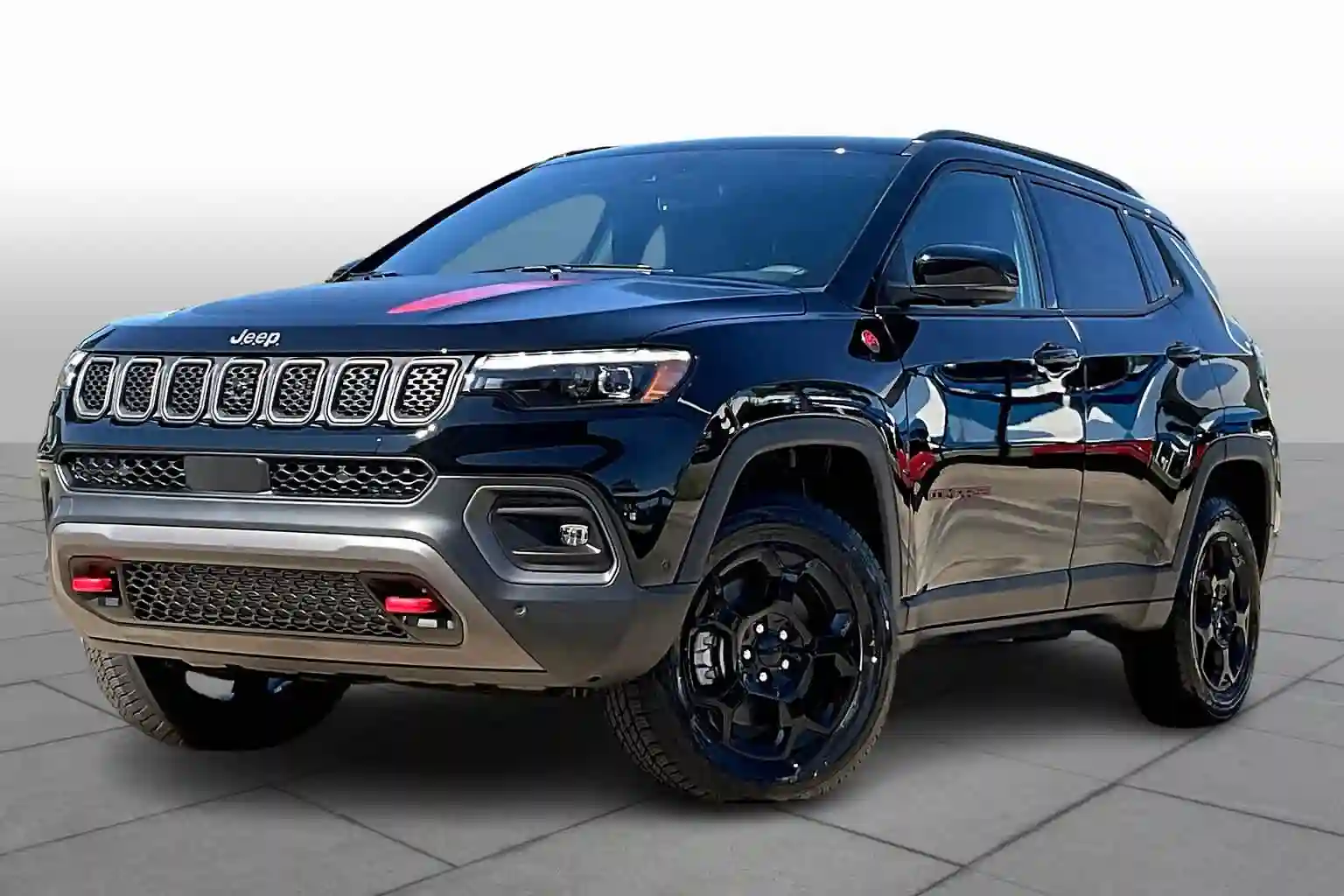 Visual distinctions like red tow hooks, matte-black hood decals, and all-weather interior trims make it stand out. Whether youâre navigating forest trails or slippery urban roads, the Compass Trailhawk delivers confidence and capability without being too large or bulky to daily drive.